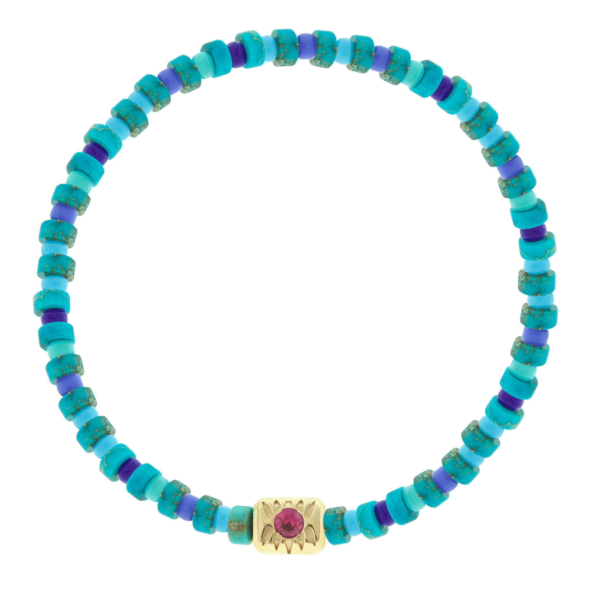 SHIELD ME Ingot with Turquoise Hexagon on Beaded Bracelet