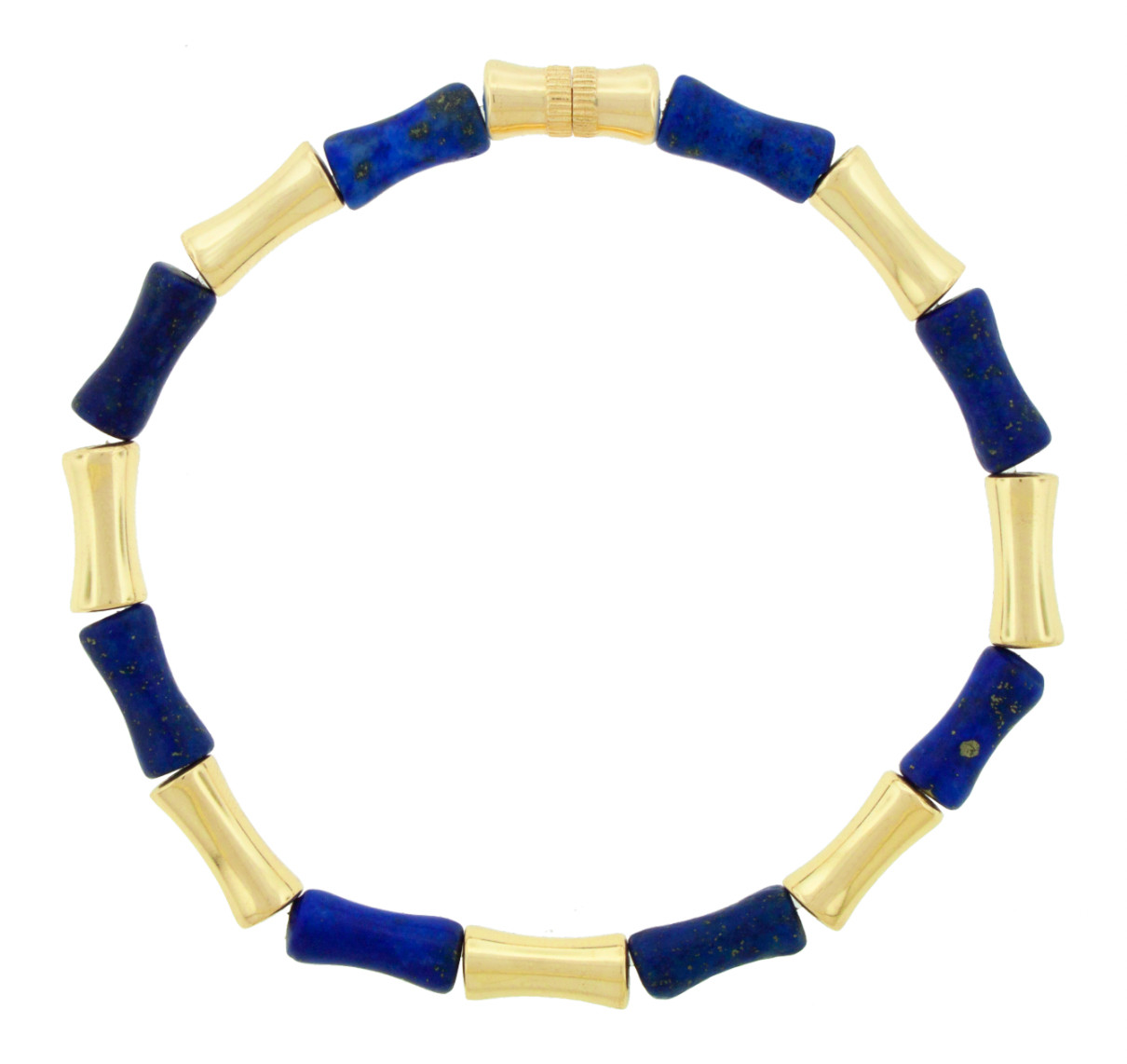 Triple Mini Gold Bamboo on Lapis Beaded Bracelet