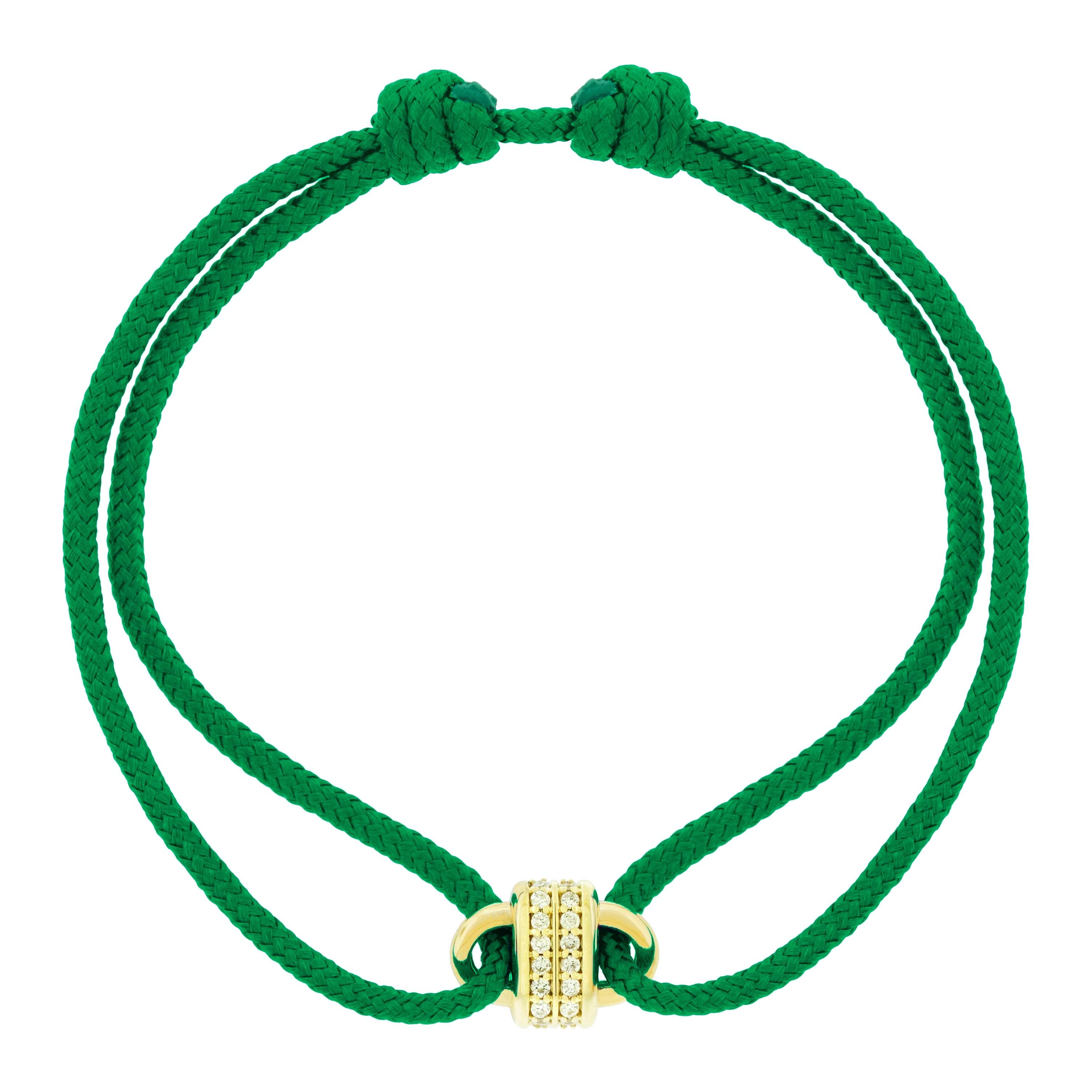 Enameled Gold Clover Ball on Evergreen Cord Bracelet