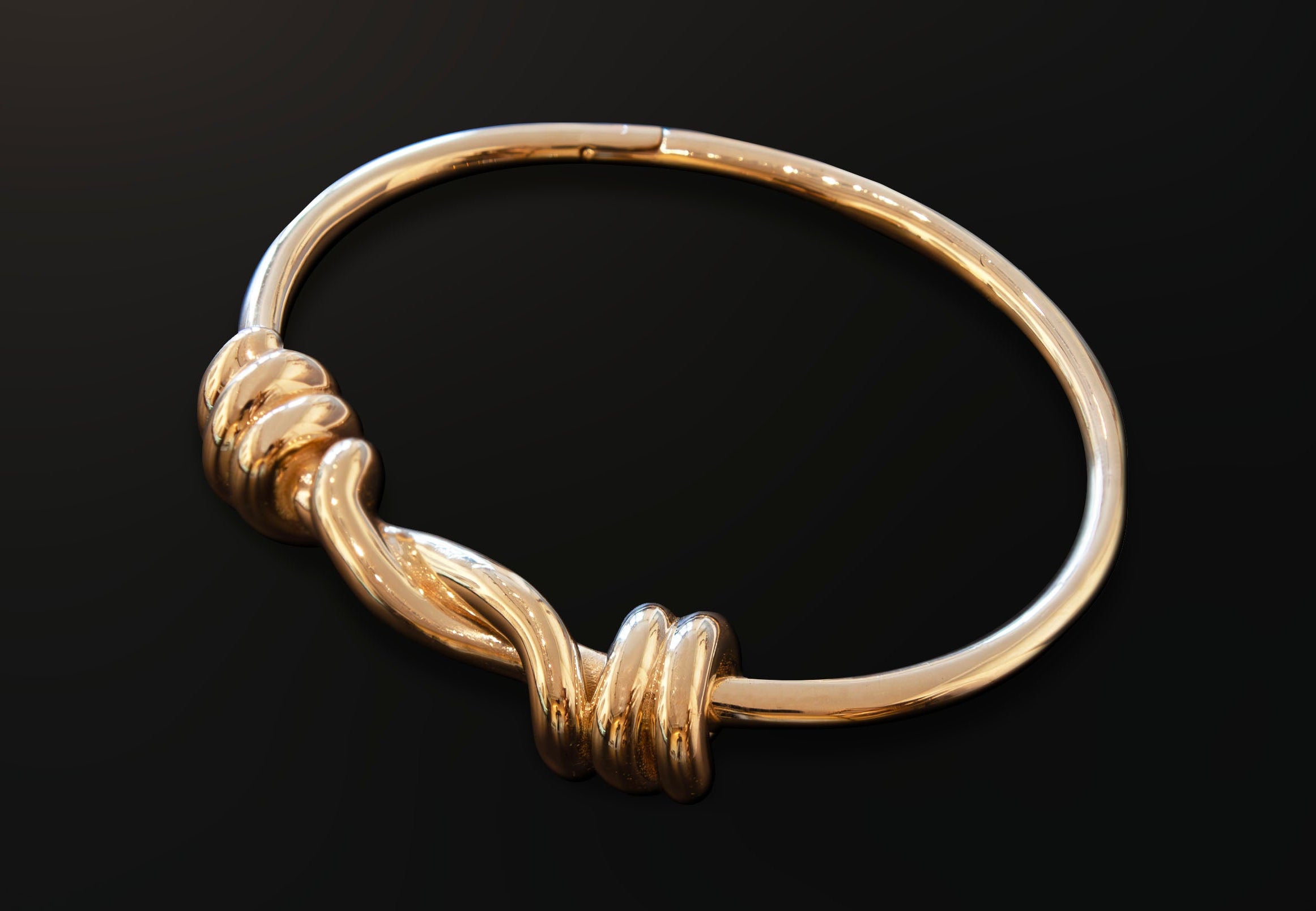 Gold Drill Bit Bangle with White Diamond Baguettes