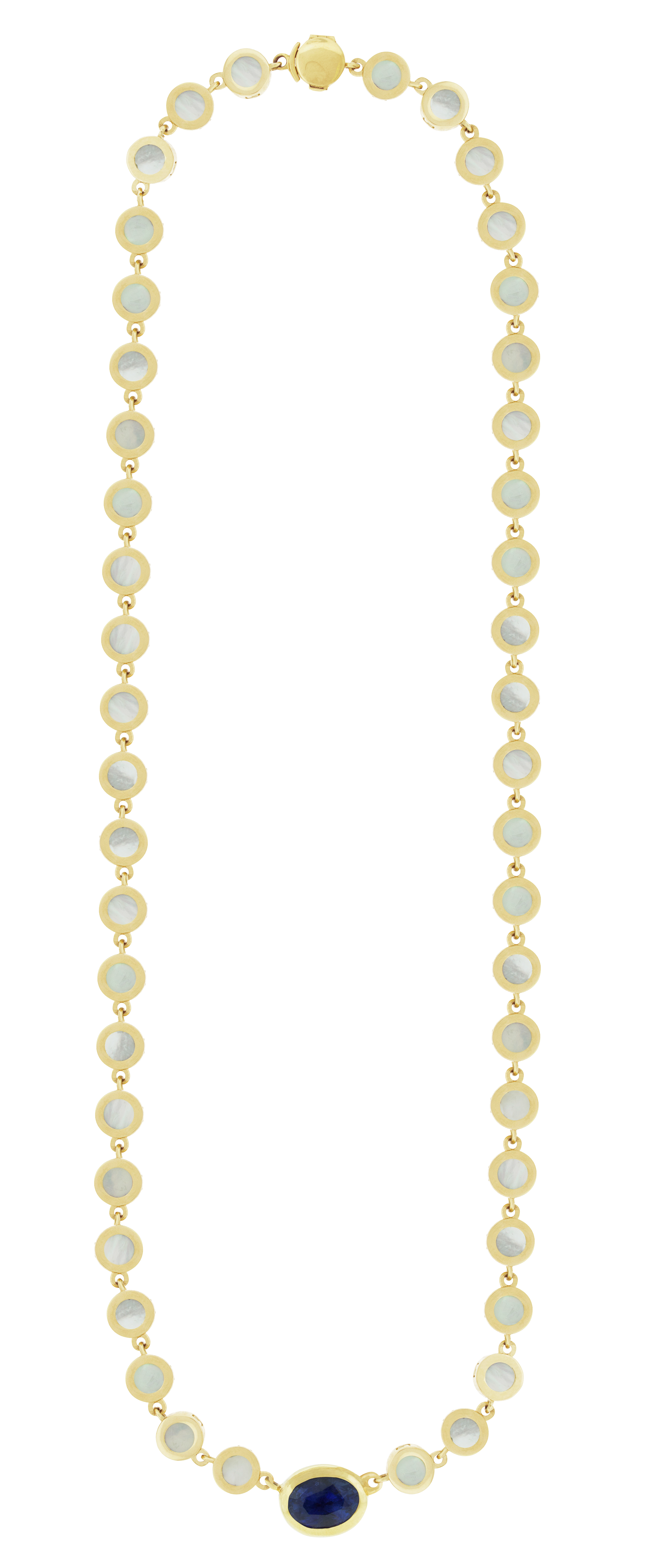 Sapphire Eye Mother of Pearl Gold Link Necklace