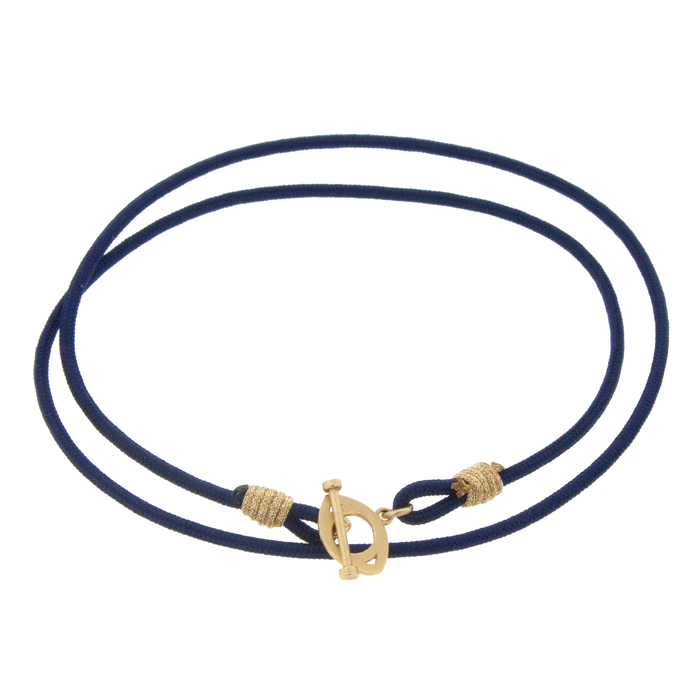 Pulsera con tubo de mal de ojo esmaltado en oro y cordón