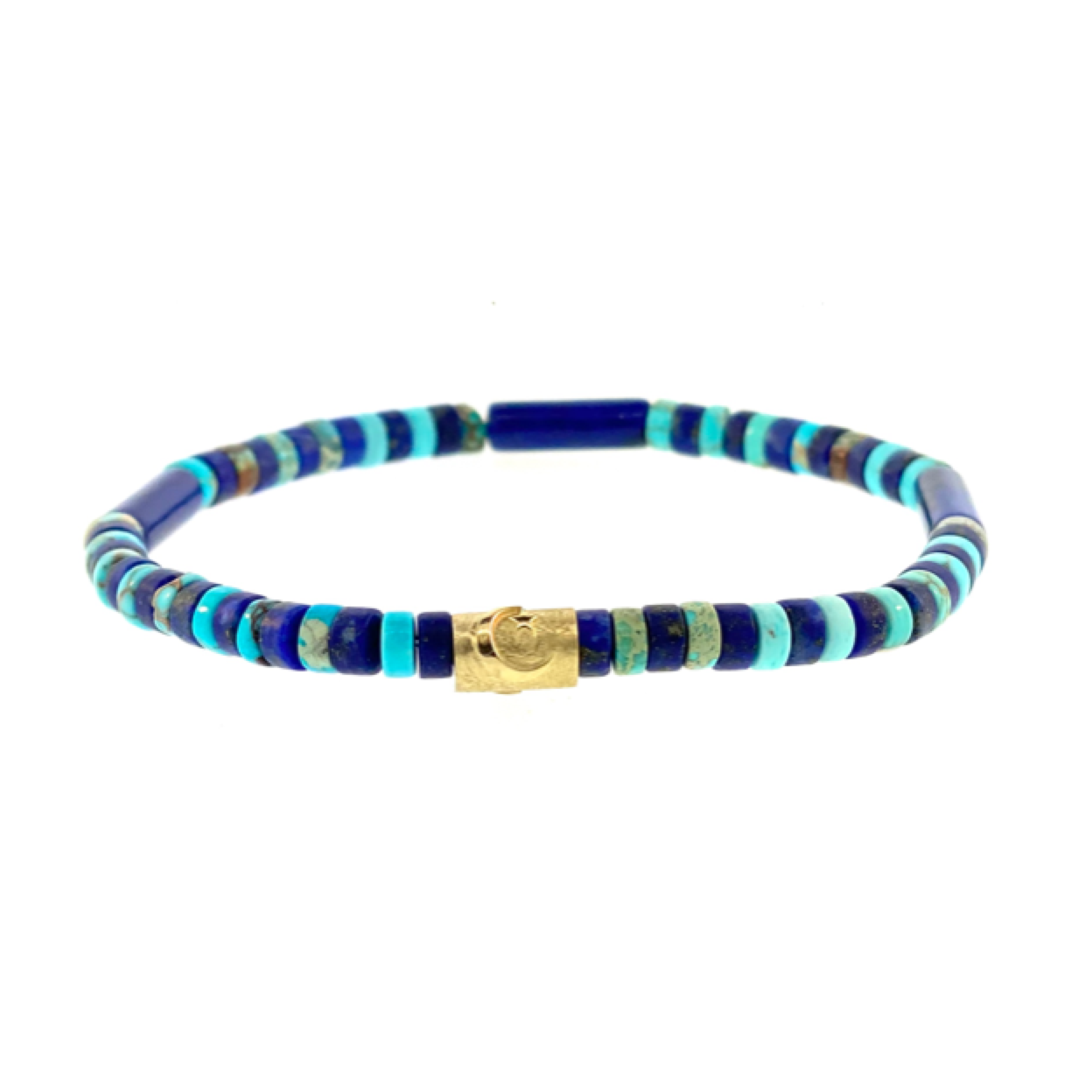 Bracelet perlé mauvais œil doré sur pierres précieuses