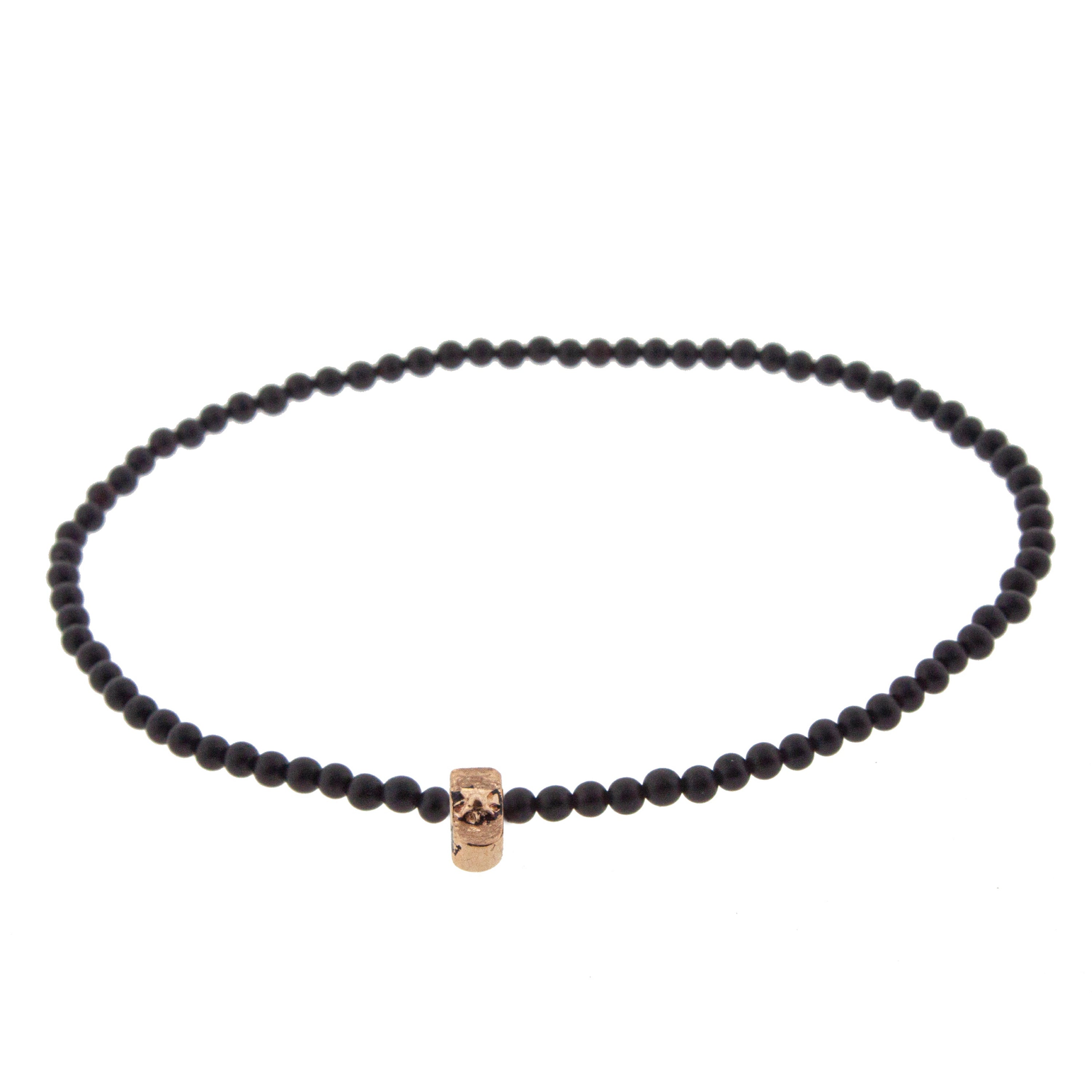 Relief Hamsa en or avec diamants noirs sur bracelet de perles double tour