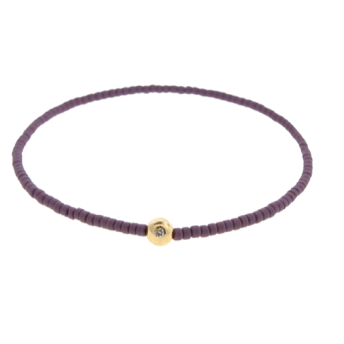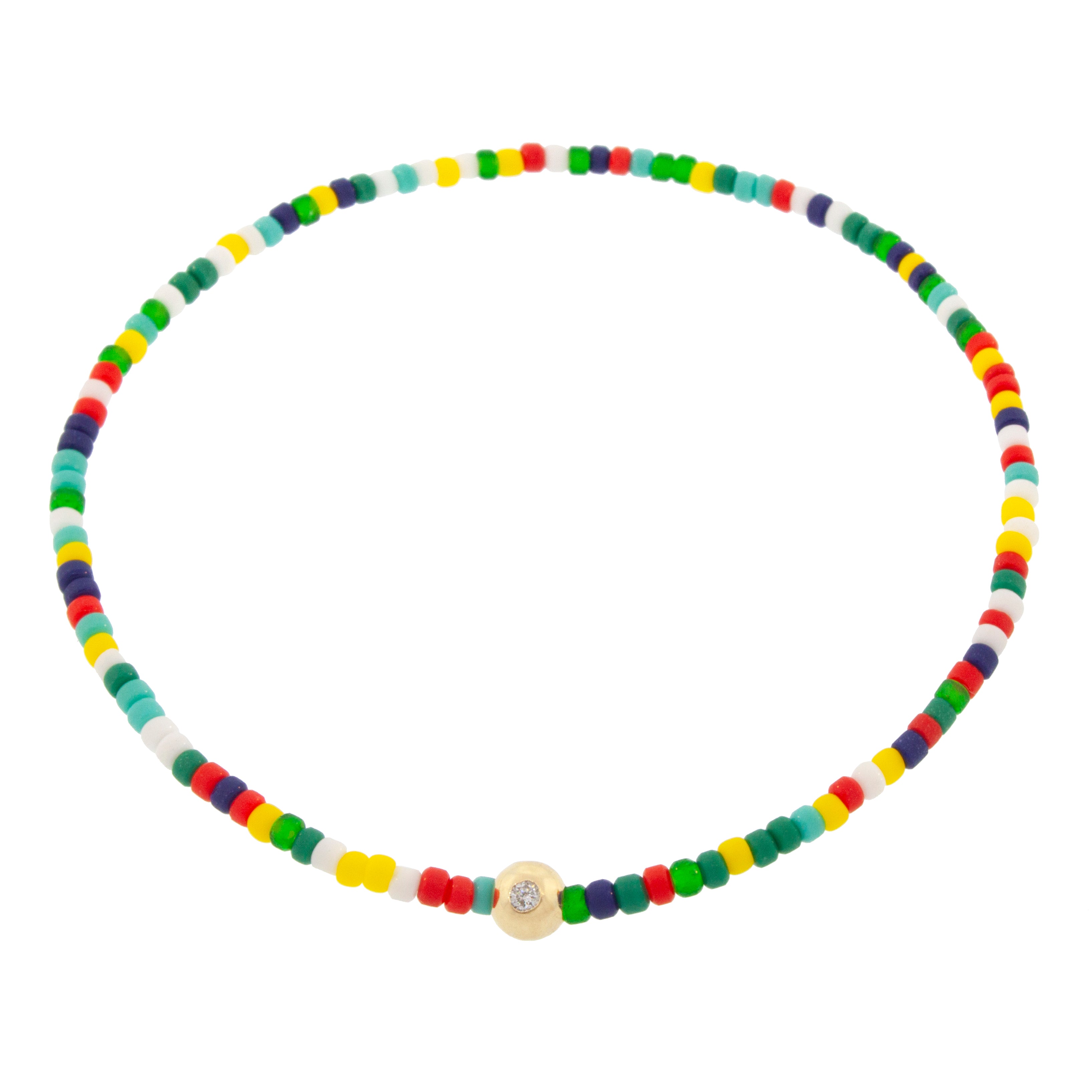 Boule d'or avec diamant blanc sur bracelet de perles de verre