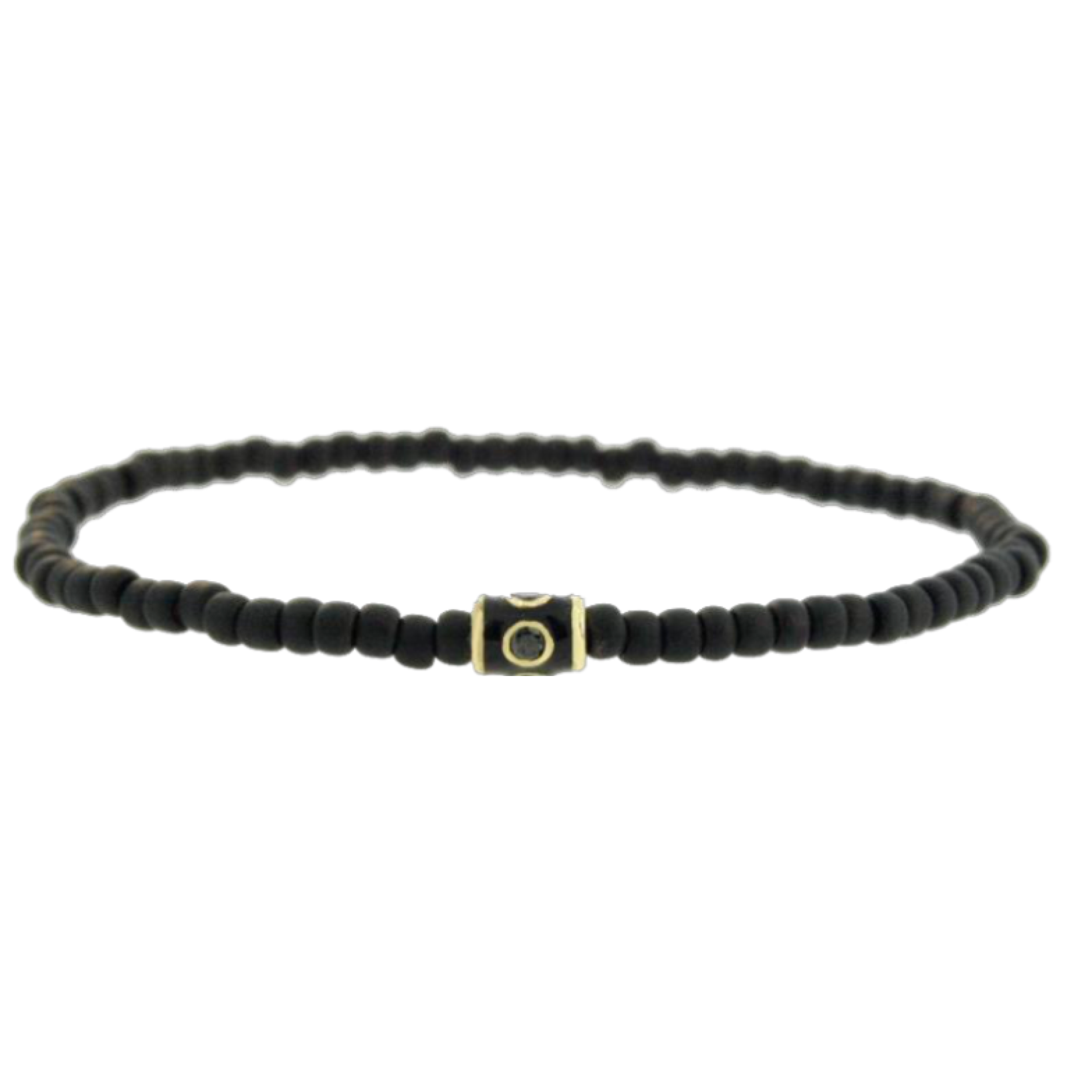Corps en or jaune 14 carats avec émail bleu marine et diamants noirs sur bracelet perlé