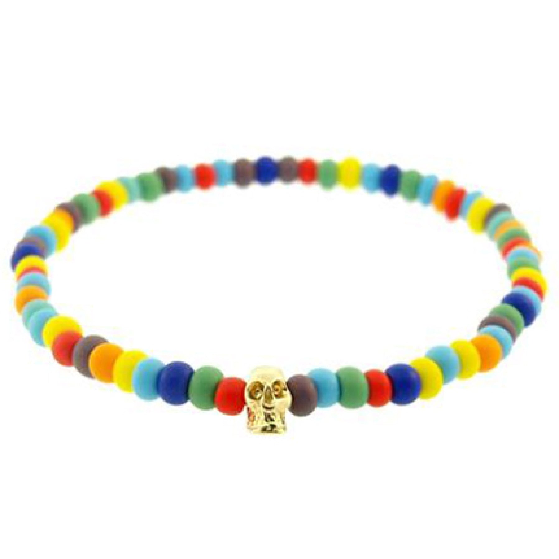 Bracelet Grand Crâne Doré Sur Perles D'Ébène