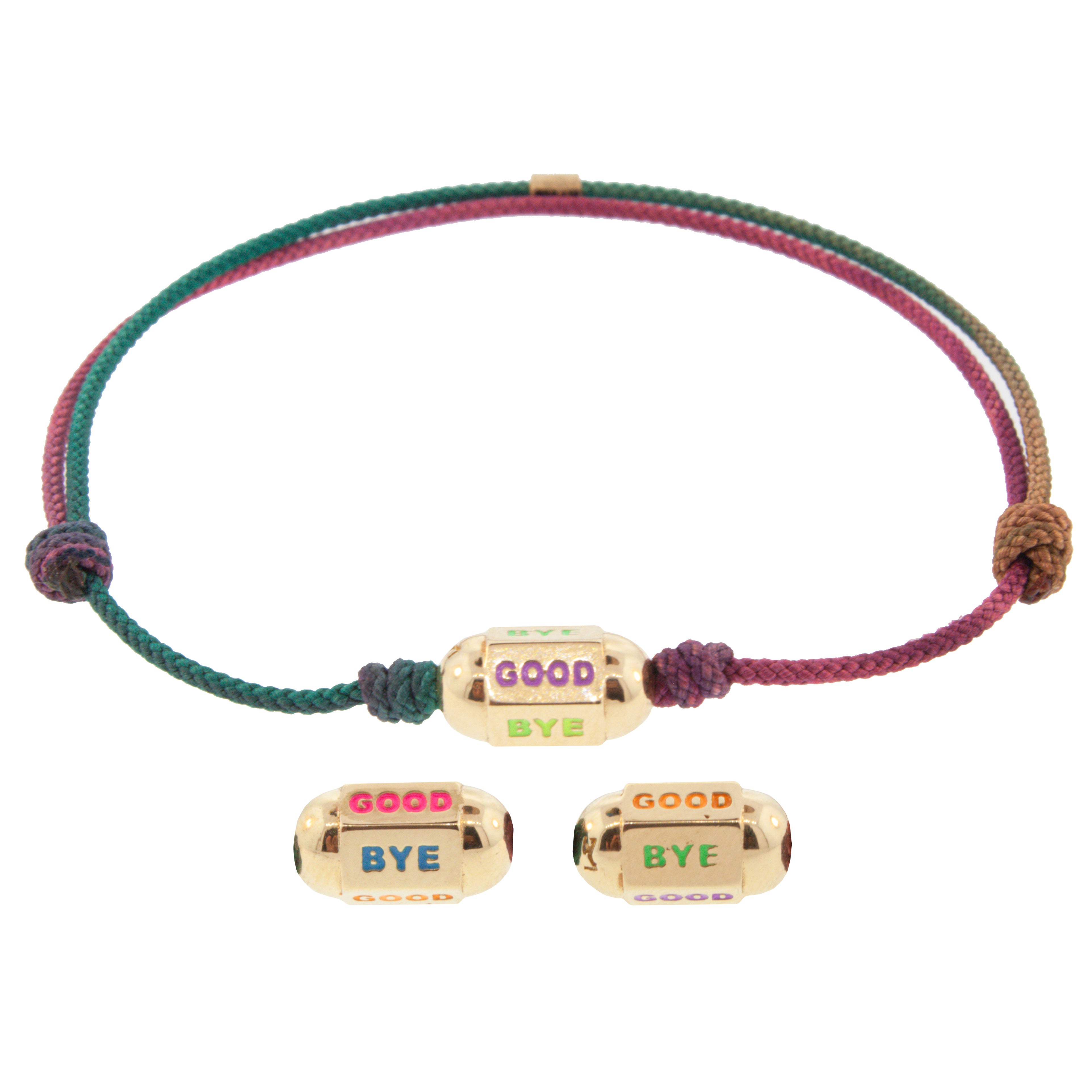 GOODBYE Perle hexagonale émaillée sur bracelet cordon