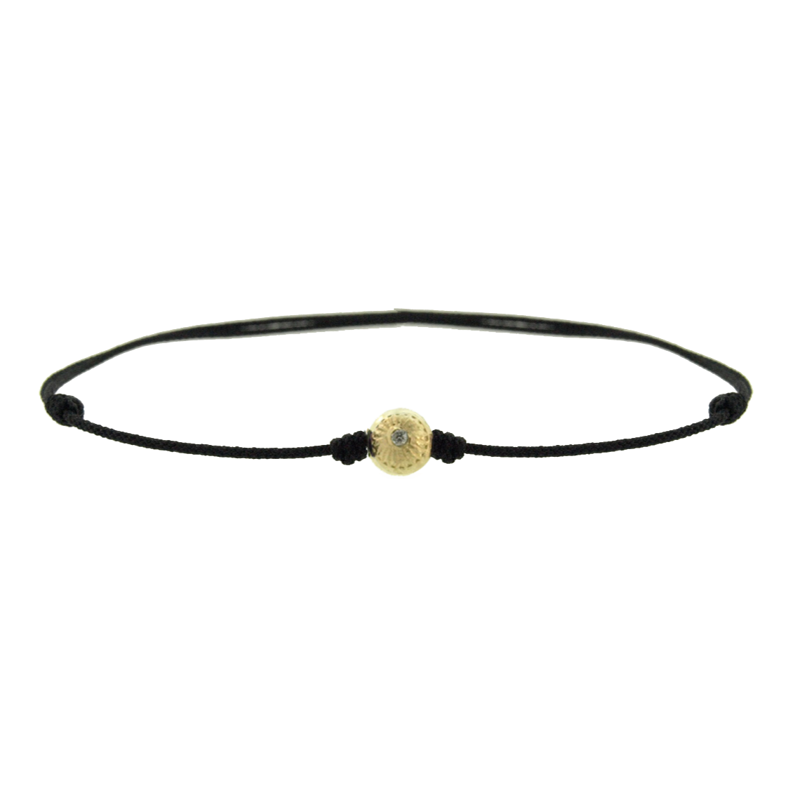 Bracelet Petite Boule Fleurie en Or Jaune avec Diamant sur Cordon