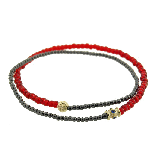 Bracelet perlé double tour avec corps en saphir et corps émaillé