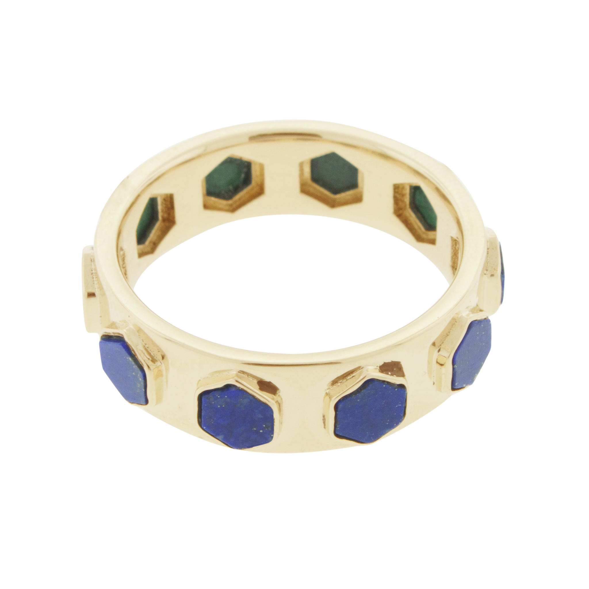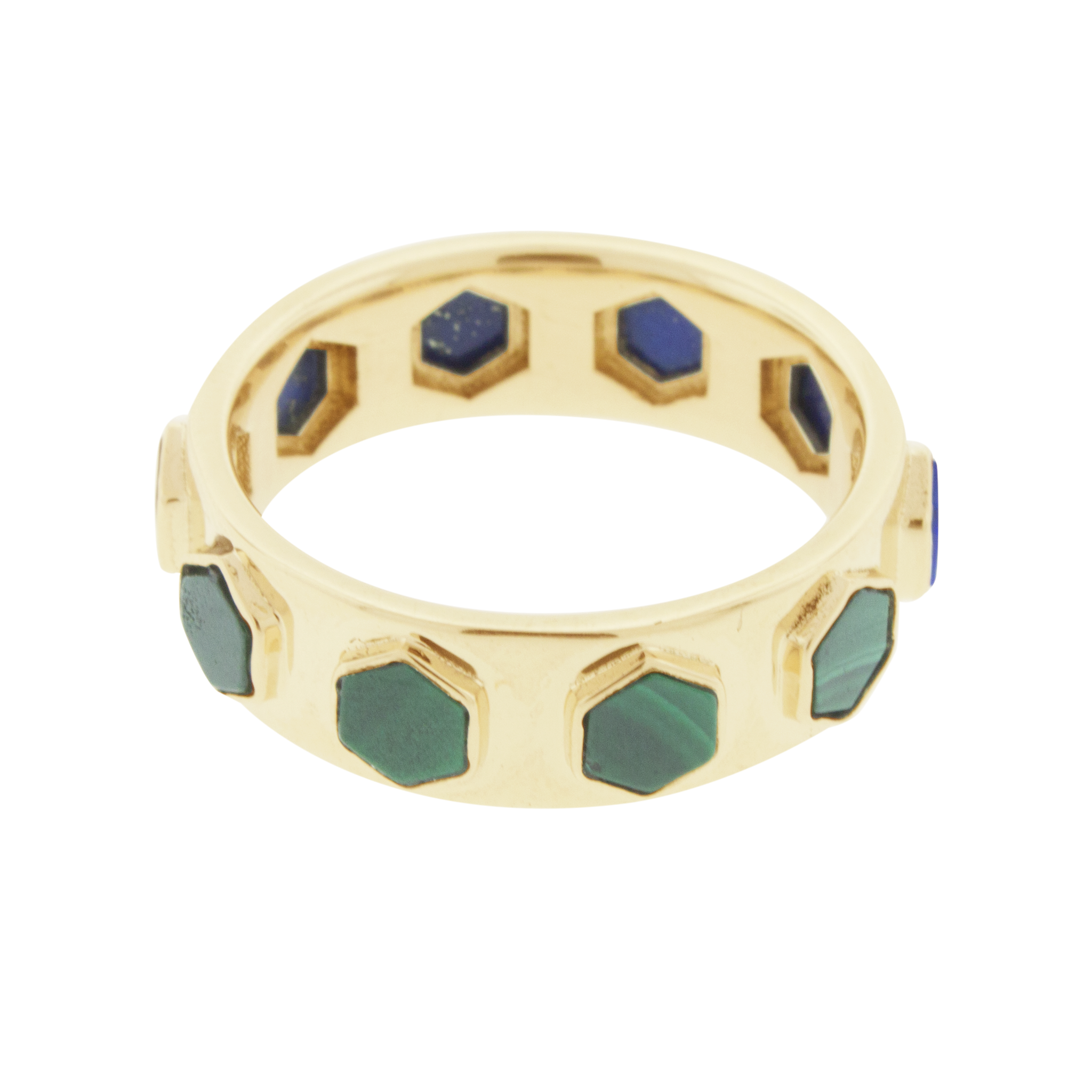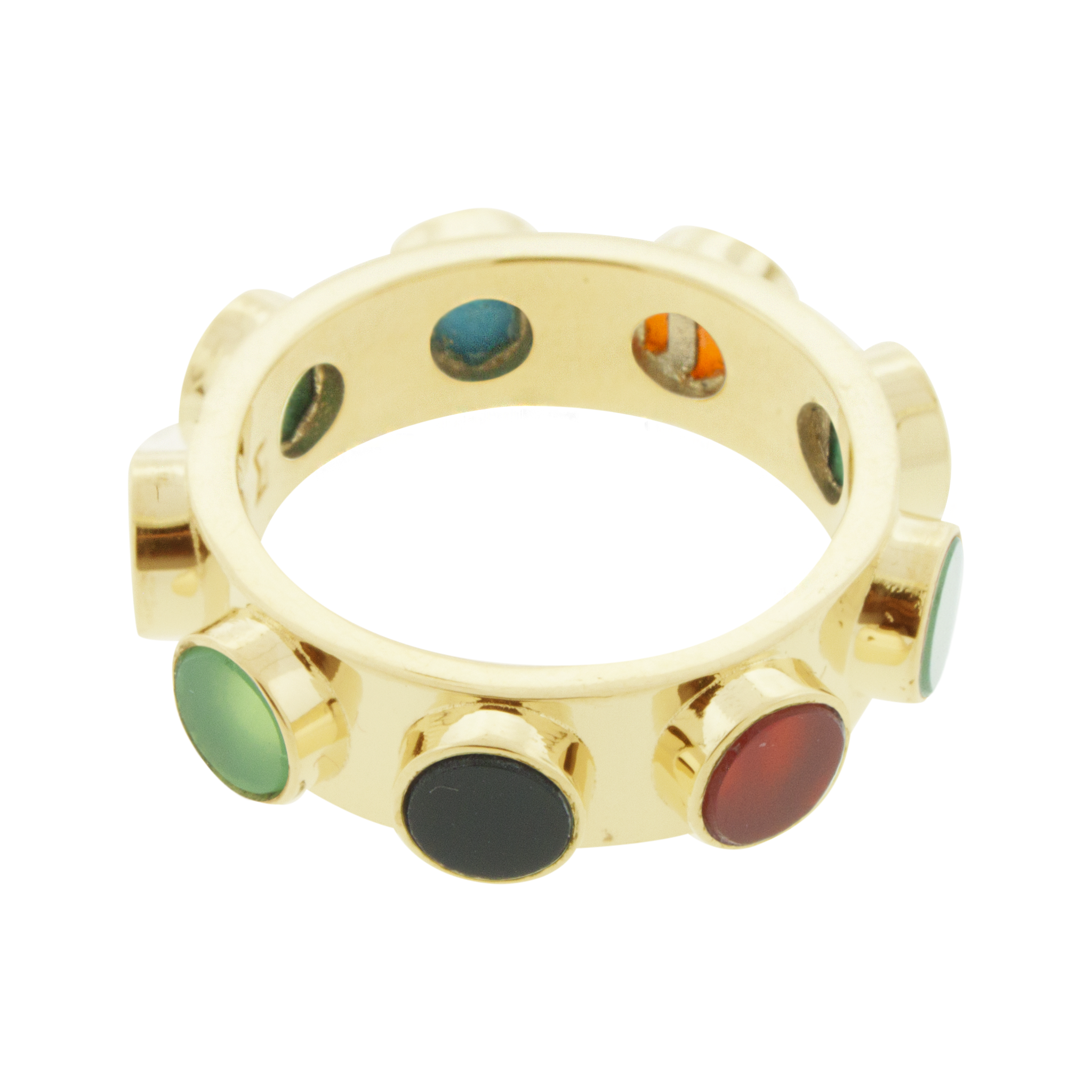 Bague serpentine avec saphirs arc-en-ciel ronds