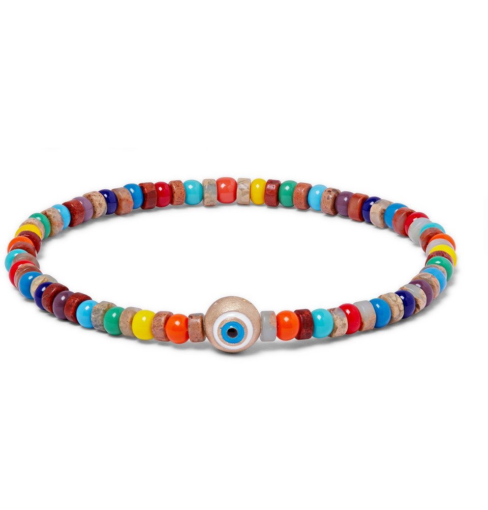 Tube mince émaillé mauvais œil sur un bracelet multi-pierres précieuses