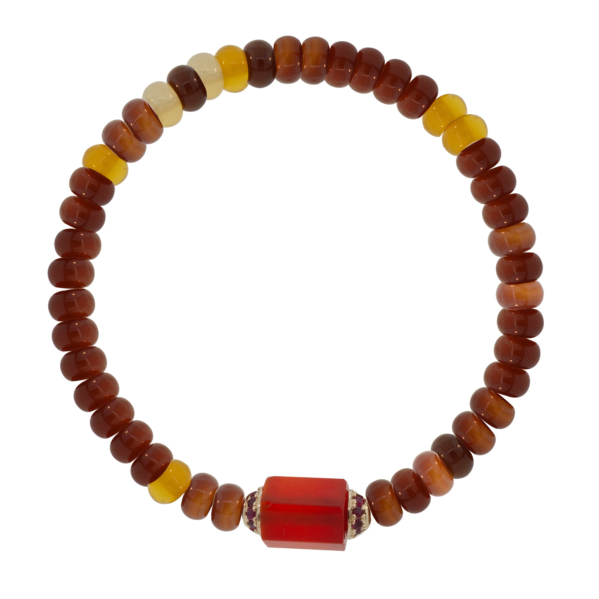 Boulon hexagonal cornaline avec rubis sur bracelet perlé agate