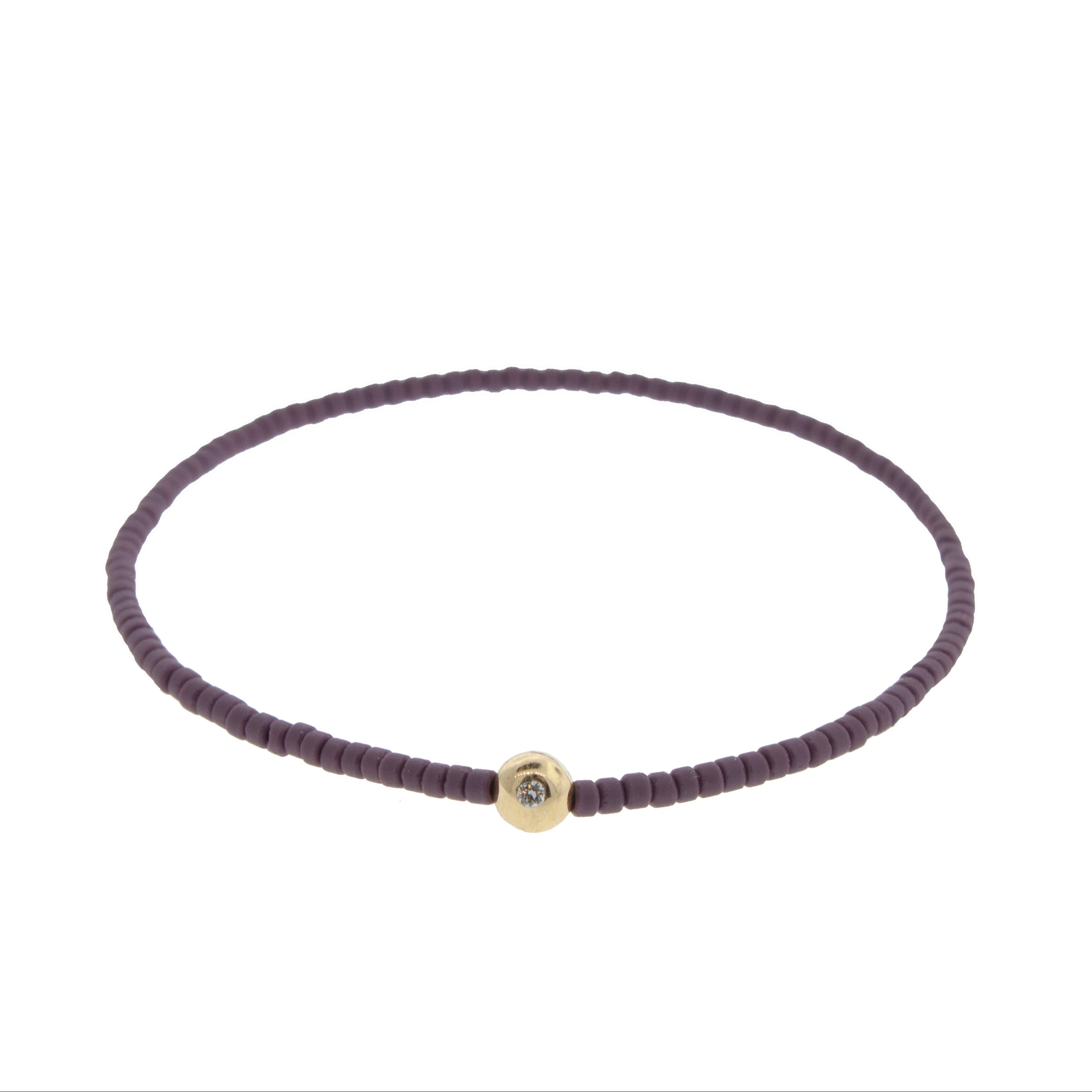 Boule d'or avec diamant blanc sur bracelet de perles de verre